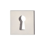 Декоративна накладка квадратної форми під ключ, виготовлена з цинкового сплаву цамак, нікельована з матовою поверхнею.