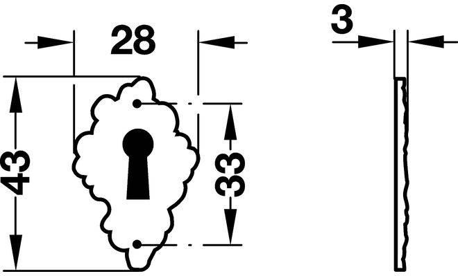 Технічні характеристики Декоративна накладная під ключ антік 43 х 28 мм 11908106