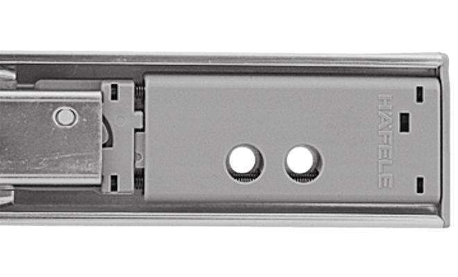 Кулькова направляюча для шухляд оснащена механізмом часткового висуву. Виготовлена зі сталі з оцинкованою поверхньою та має здатність навантаження до 45 кг з механізмом самозасувов і амортизатором Smuso.