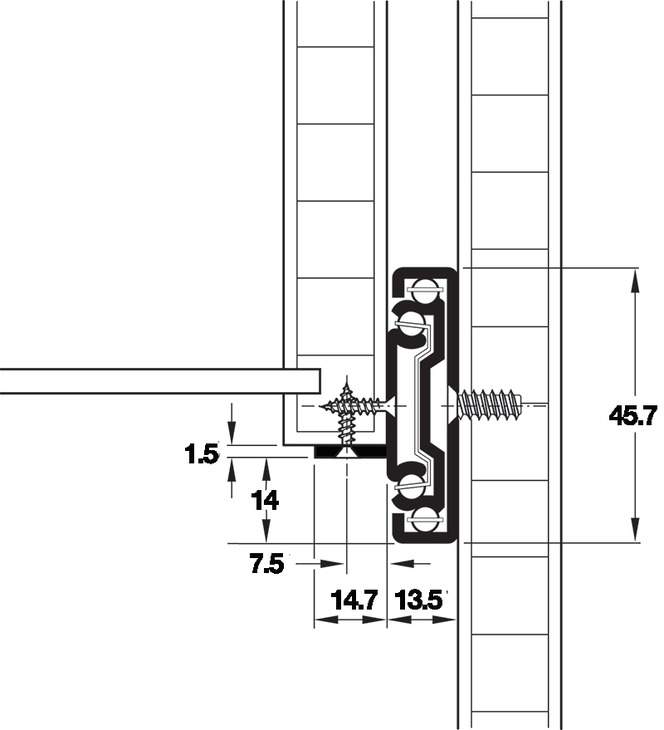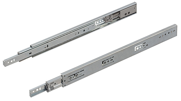 Кулькова направляюча для шухляд оснащена механізмом часткового висуву WOODPRO. Виготовлена зі сталі з оцинкованою поверхньою із вантажопідйомністю 45 кг. З механізмом сазасовування і амортезації Smuso.