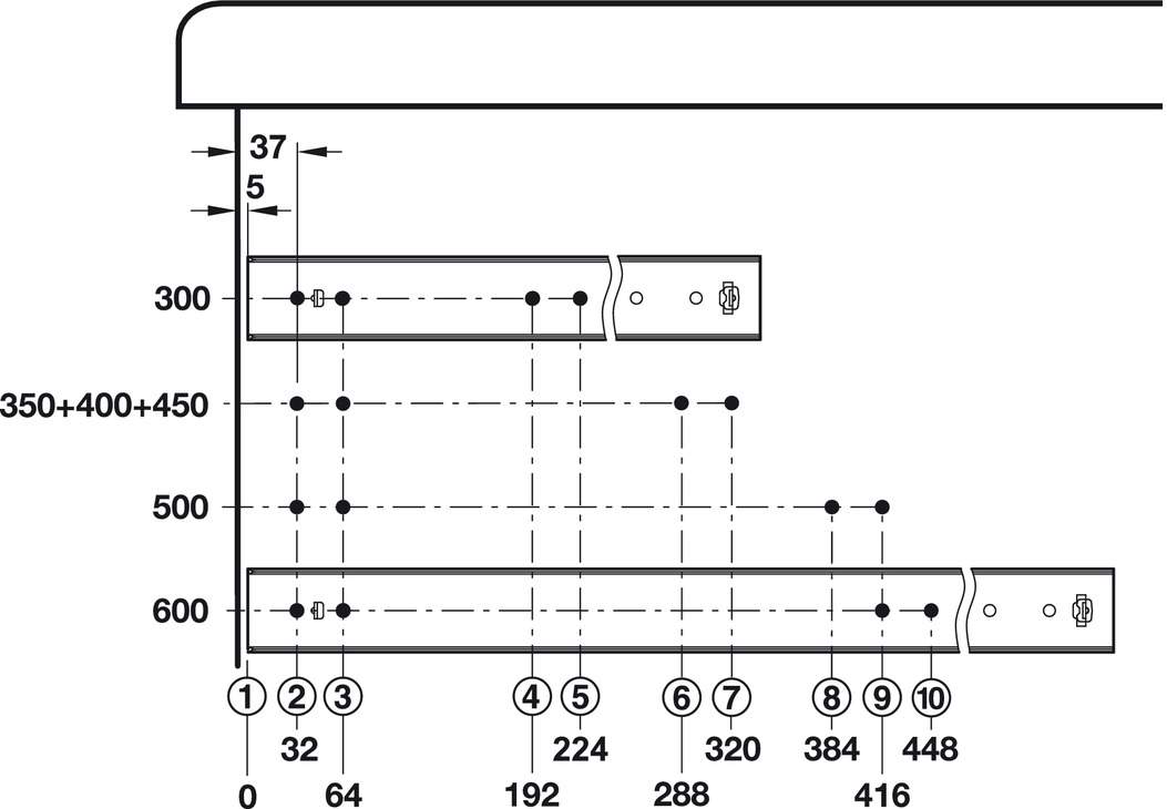 Технічні характеристики Направляюча кулькова навантаження 105 кг KTH сталева оцинкований 450 мм 43206945