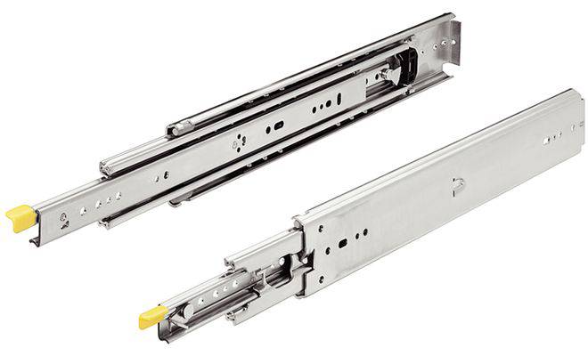 Кулькова направляюча для шухляд оснащена механізмом повного висуву, виготовлена зі сталі з оцинкованою поверхньою. Призначена для шухляд з дуже великим навантаженнням, може використовуватись зліва і справа.