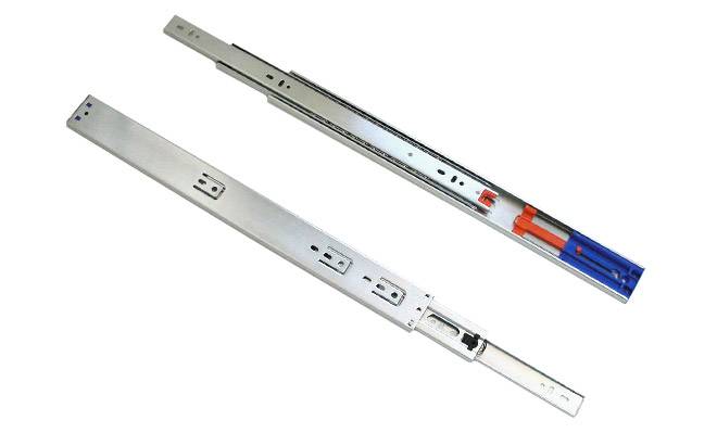Зручний виріб, який дозволяє фіксувати положення ящика середньої тяжкості. Мова йде про напрямну, яка розрахована на середню вагу – 20 кілограмів на пару. Надійність моделі пояснюється тим, що вона належить до типу повного висунення. Завдяки парі таких напрямних двері закриваються плавно, що позитивно впливає як на термін експлуатації ящика, так і на можливий час використання напрямних. Зверху дана модель покрита достатнім шаром цинку, що захищає її від різних хімічних пошкоджень, викликаних попаданням абразивних мийних речовин.