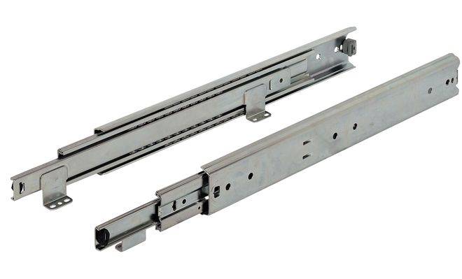 Кулькова направляюча для шухляд оснащена механізмом повного висуву, виготовлена зі сталі з оцинкованою поверхньою. Використовується для шухляд з навантаженням до 60 кг, та з утримуючим запобіжником для фіксації в закритому положенні. З двома кутниками , а починаючи з монтажної довжини 550 мм - з трьома кутниками.