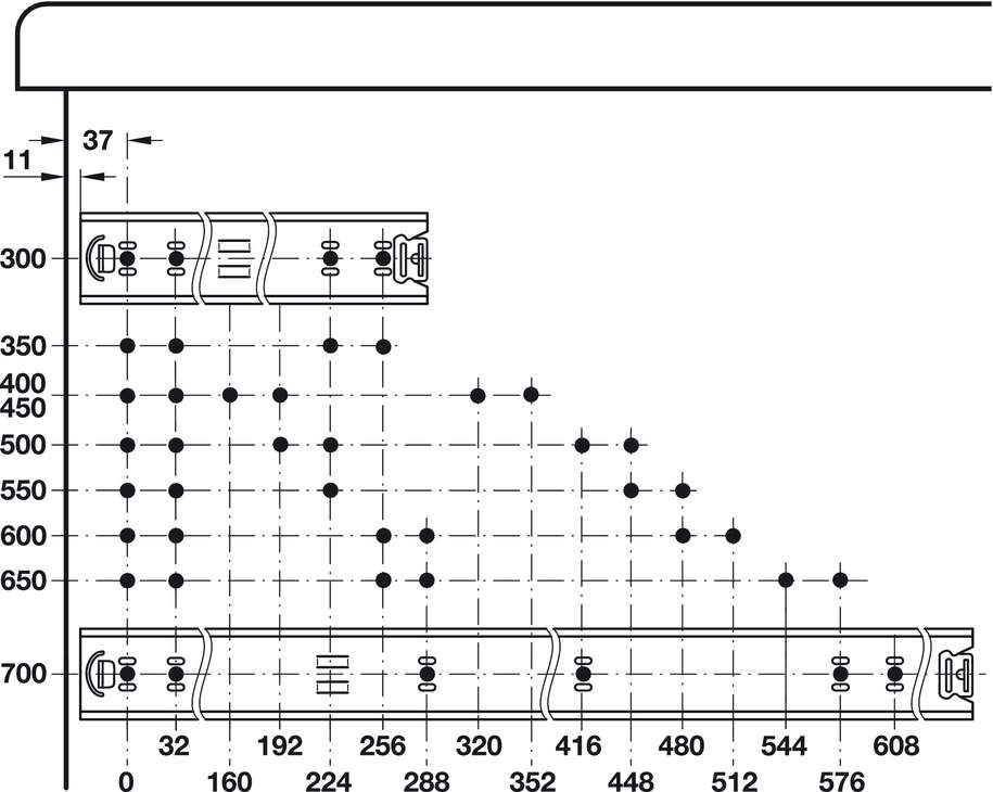 Опис Направляюча кулькова повний висув накладний монтаж навантаження на пару 60 кг 650 мм 42235965