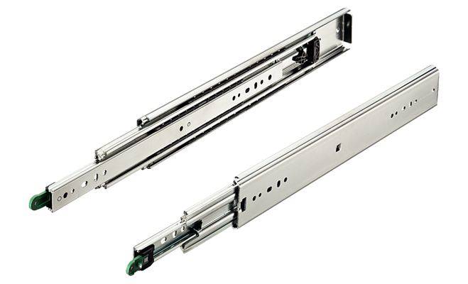 - кріплення витримує колосальні навантаження, при цьому функціонує плавно і безшумно, забезпечуючи повне висування і закривання ящиків, а також поличок;