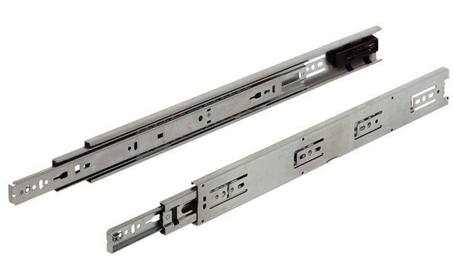 Кулькова направляюча для шухляд оснащена механізмом повного висуву, виготовлена з оцинкованої сталі. Використовується для шухляд з навантаженням до 45кг, та з утримуючим запобіжником для фіксації в закритому положенні. Оснащена функцією самозакриття. Може відчіплюватися за допомогою розчіплювального ричага.
