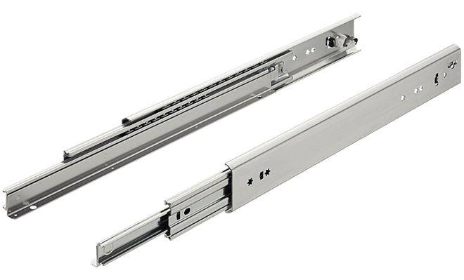 Кулькова направляюча оснащена механізмом повного висуву та виготовлена зі сталі з оцинкованою поверхньою. Використовується для шухляд з великим навантаженням , оснащена функцією самозасуву.