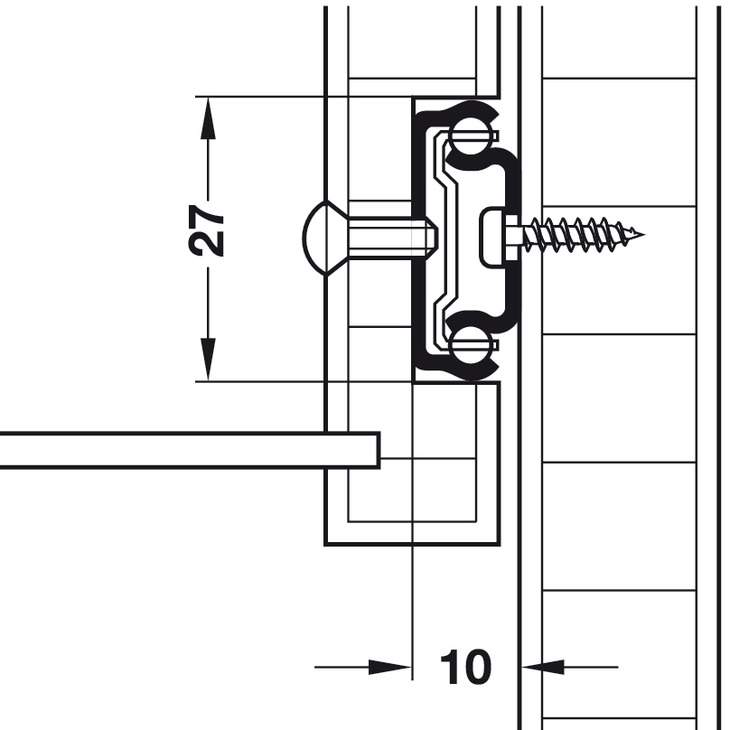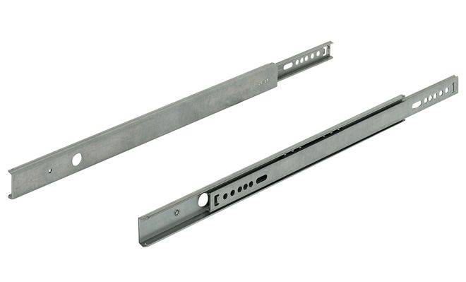 Кулькова направляюча для шухляд оснащена механізмом часткового висуву, виготовлена зі сталі з оцинкованою поверхньою та має здатність навантаження до 12 кг під паз.