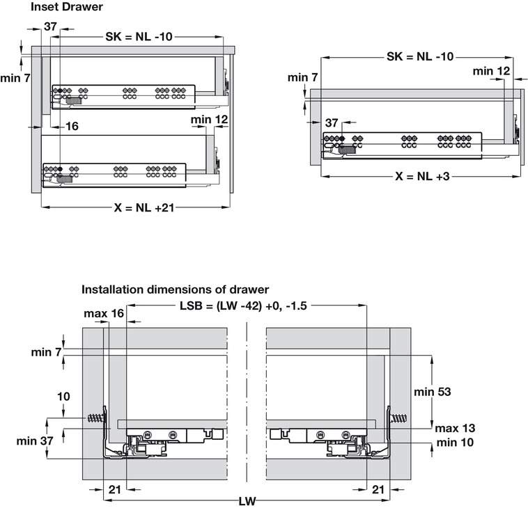 Технічні характеристики Направляюча роликова DYNAPRO прихований монтаж 450 мм повний висув м'яке закриття 40 кг