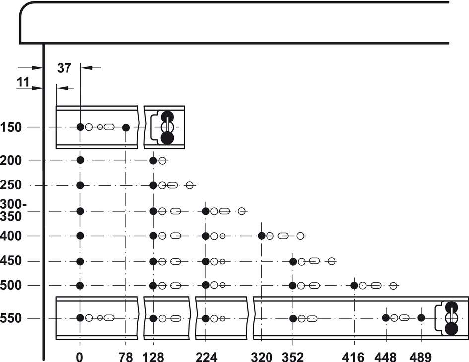 Технічні характеристики Направляюча кулькова повний висув 350 мм сталь оцинкований 35 кг на пару 42234935