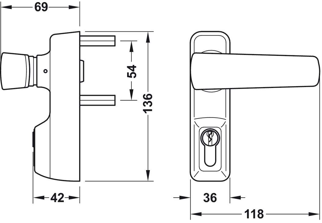 Технічні характеристики Натискна дверна ручка чорний для PED 200 і PED 210 91152113