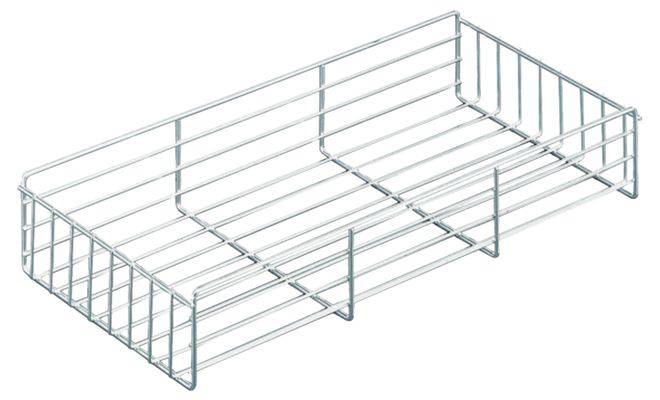 Навісна корзина виготовлена зі сталі з пластмасовим покриттям кольору білого алюмінію. Розмір: ширина 160 мм, довжина 477 мм, висота 75 мм.