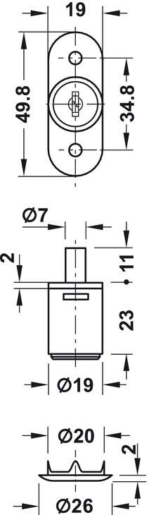 Нажимний циліндр Econo d 19 х 23 мм для розсувних дверей з однаковими комбінаціями закривання хромований полірований 23433431