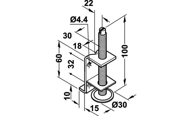 Опис Опора регульована з кріпленням М10 х 100 мм 63730941