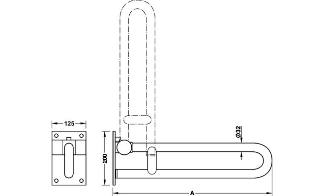 Технічні характеристики Опорна відкідна ручка нержавіюча сталь 850 мм 98078404