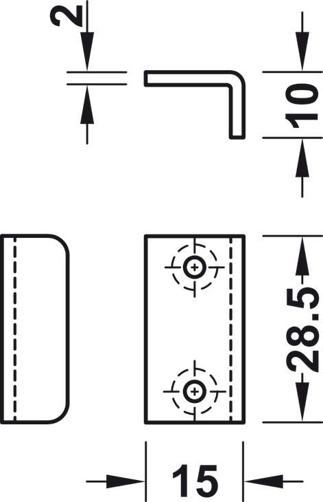 Відповідна планка кутова замків Symo Universal для прикручування 28,5х 15 мм сталь чорний 23342390