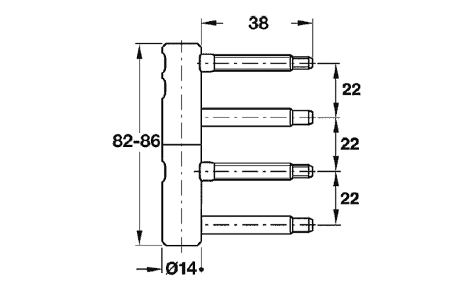 Технічні характеристики Петля 4-х штирева сталева жовта оцинкована D14мм 83мм