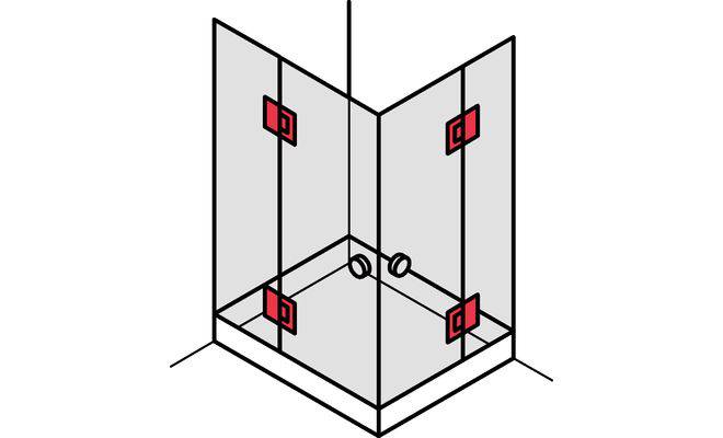 Опис Петля для душової кабіни 8 – 12 мм 180° латунь хромований 30 кг на дві петлі 98153182