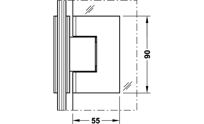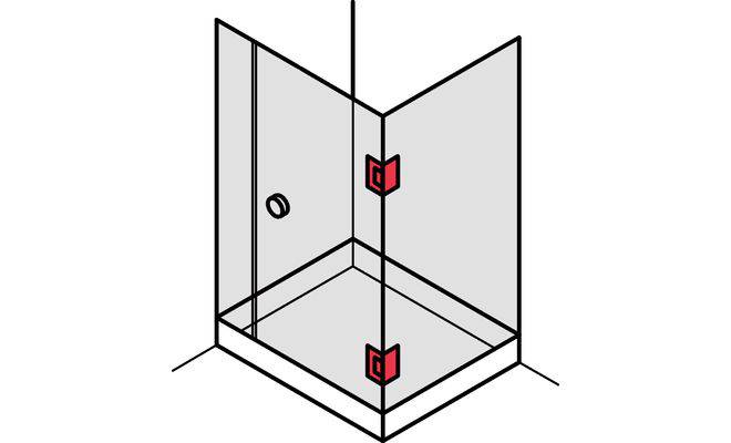 Технічні характеристики Петля для дверей душової кабіни AquaSys під кутом 90 град. хромований 90 град. 30 кг. 8-12 мм 98153162
