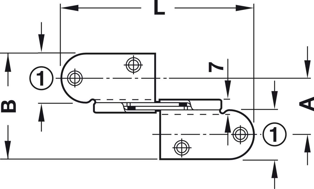 Шарнір для відкидних стулок, для столів з каркасом