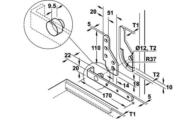 Технічні характеристики Петля для секретера нержавіюча сталь 40 кг 36150830