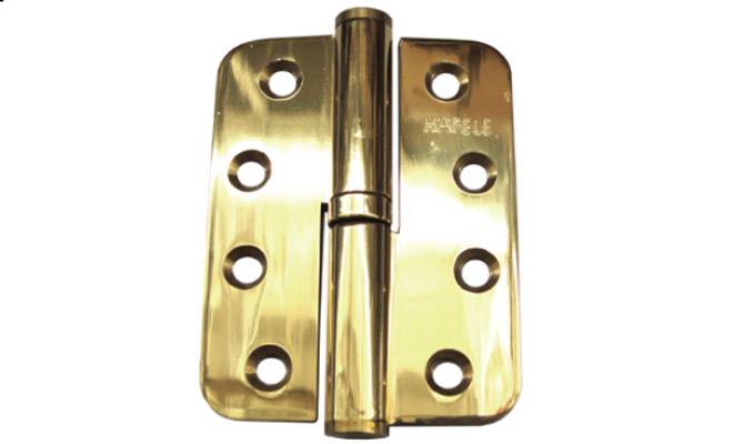 Покриття: поліроване. Варіант установки: лівий. Матеріал: латунь. Петля для дверних коробок з деревини або металу, для нефальцованних внутрішніх дверей. Опора петлі з жорстким штифтом, ролик з шарикопідшипником.