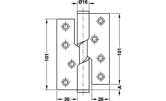 Технічні характеристики Петля карточна ліва висхідна нержавіюча сталь D16 мм 101 мм 92626003