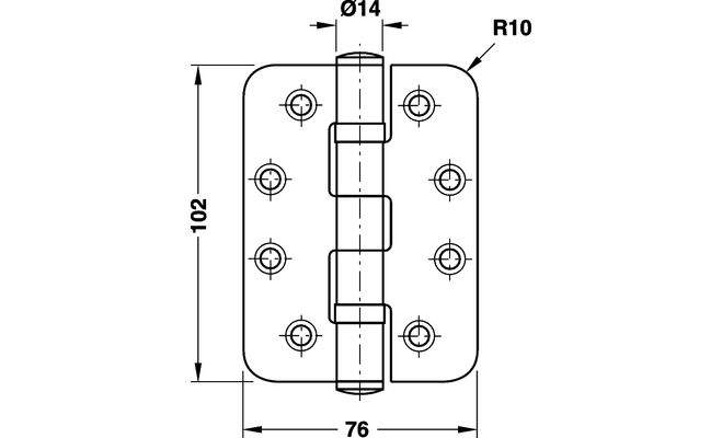 Петля карточна для дверей. З двома підшипниками. Несуча здатність: до 120 кг. на пару. Матеріал: нержавіюча сталь. Покриття / колір: без покриття, полірування. Виконання: закруглені кути. Кріплення: праве і ліве. Кріплення петлі: шляхом пригвинчування шурупами. Область застосування: Для дверних коробок з деревини або металу. Для дверей без фальцу. Розміри петлі: Висота: 102 мм. Ширина в розкритому стані: 76 мм. Діаметр роликів: 14 мм. Товщина петлі: 3 мм. Закруглення кутів: R10.