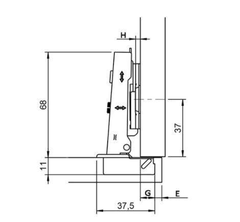 Завіса меблева чашкова Häfele Metalla 310 SM, накладна, кут відкривання 110°. Виготовлена зі сталі, для стандартних застосувань. Діаметр чашки 35 мм, глибина свердління 12 мм. Кріплення чашки — під шурупи.