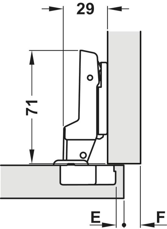 - Точне тривимірне регулювання: Система 3D-регулювання дозволяє ідеально вирівняти фасад у всіх площинах: бічне налаштування становить ±3 мм, регулювання по висоті — ±2 мм, а по глибині — ±2 мм. Це забезпечує зручний доступ до ексцентрикових гвинтів та легку адаптацію зазорів навіть після монтажу.