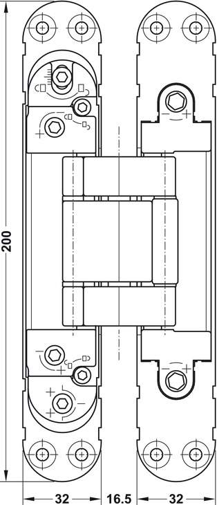 Технічні характеристики Петля прихована врізна хромований 40 мм (до 140 кг 3 петлі) 92791624