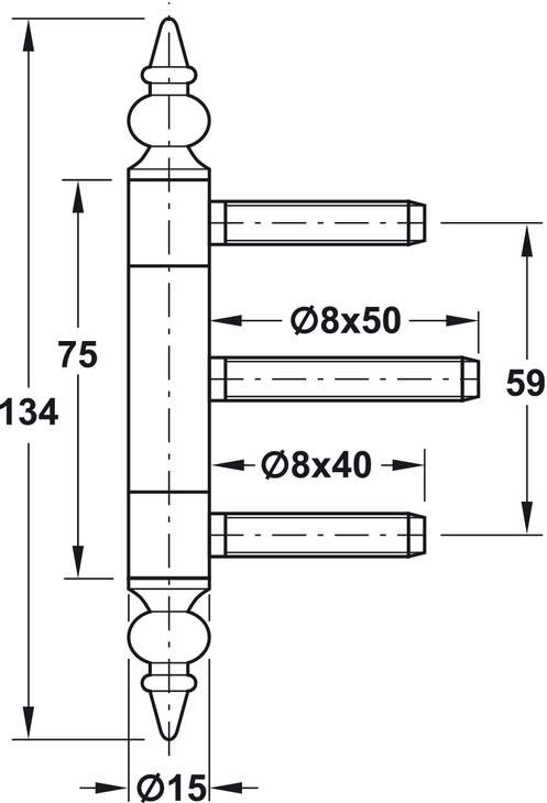 Технічні характеристики Завіса дверна штирьова сталь золота з болтом DHMF15 мм BAKAC1-15ZKWF для внутрішніх царг 92211582