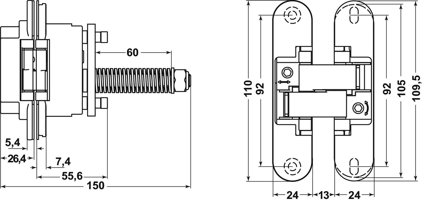 Товщина дверей ≥32 мм Ø різця 16,00 мм Ø ущільнювальне кільце 27,00 мм Регульована 3D висота за глибиною, сторона: 1,5 мм