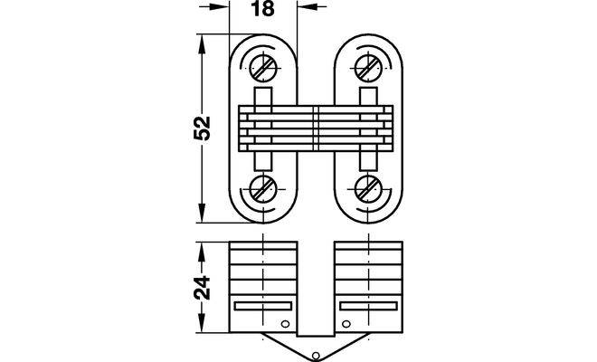 Технічні характеристики Петля Vidi корпус-зєднання пластик білий-сталь оцинкований 180 для дверей від 24 мм 18 x 52 мм 34104710