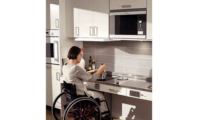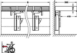 Ліфт робочої плити, для вертикального переміщення робочих плит, мийок, кухонних лотків і т. д., можливе вбудовування висувних шухляд, керування за допомогою клавішного вимикача, при торканні планки для захисту від затискання, рух вниз припиняється, матеріал: алюміній, колір: рама: срібний/блок керування і розетки: сірий, розмір: висота 120 мм, монтажна ширина 1000 мм, робочий хід 990 мм, швидкість ходу 1,5 см/с, максимальне навантаження 100 кг, напруга мережі 230 В, 50 Гц, для монтажу шляхом пригвинчування до стіни.
