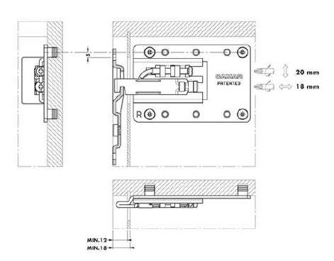 Регулювання: По глибині: 18 мм; по висоті: 20 мм;