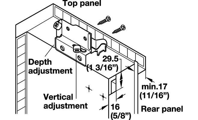 Технічні характеристики Підвіс для шаф лівий з регулюванням, навантаження 130 кг на пару прикручування гвинтами 29002711