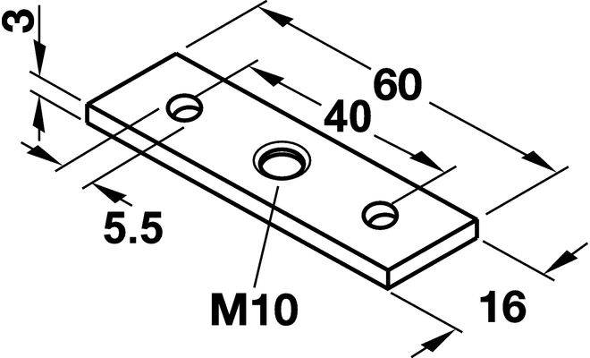 Технічні характеристики Планка монтажна М10 16 х 60 мм сталь оцинкований 63709008