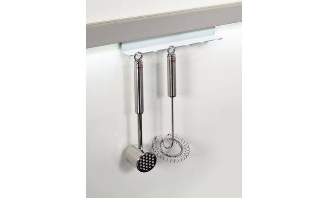 Планка з гачками, кількість гачків: 2, матеріал: сталь, колір: титановий сірий, розмір: ширина 85 мм, глибина 44 мм, висота 38 мм, для установки шляхом навішування знизу.