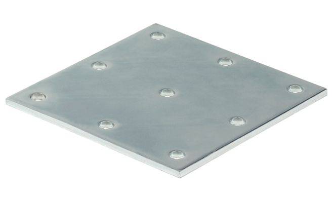 Плита для підлоги для розподілу тиску. Виготовлено зі сталі, з оцинкованою поверхнею. Діаметр отвору - 6.5 мм. Використовується для м’яких підлогових покриттях.