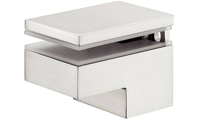 Дизайн-затискний полицетримач, розмір: 40х60 мм, для полиць товщиною 6-40 мм, цинкове лиття, колір: нержавіюча сталь, для дерев'яних і скляних полиць, для монтажу шляхом пригвинчення до опорного елемента, кріплення полиці шляхом затискання в затискних колодках, в комплекті з кріпленням.