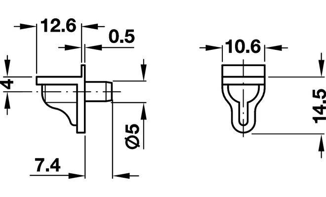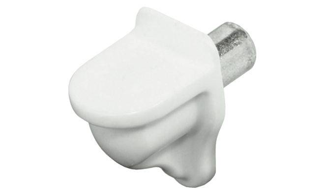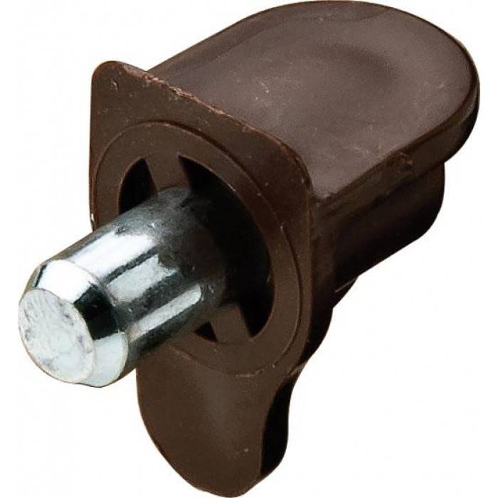 Полицетримач для дерев'яних і скляних полиць, матеріал: пластмаса зі сталевим штифтом, колір: коричневий/оцинкований, для сверлового отвору діаметром 5 мм, максимальне навантаження 80 кг.