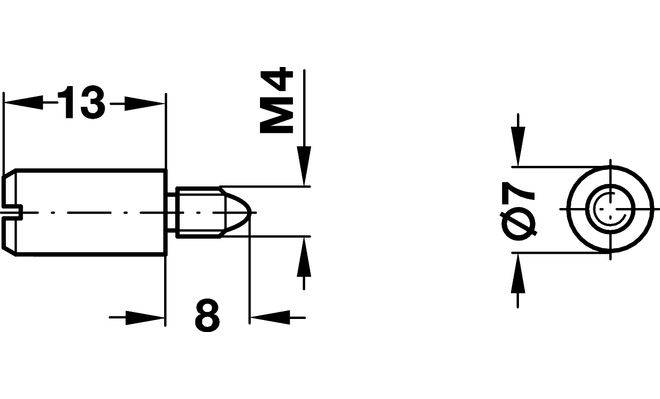 Технічні характеристики Полицетримач для дерев'яних полиць D7 х 13 мм М4 х 8 мм (упаковка 100 шт) 28239705