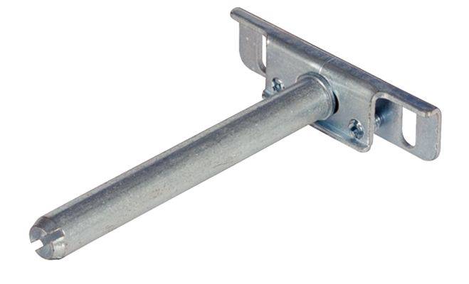 Полицетримач з кріпильною планкою і боковим регулюванням, матеріал: сталь, оцинкований, прихований, довжина 100 мм, для пригвинчування до опорного елементу та врізання в полицю, є можливість регулювання нахилу і висоти.