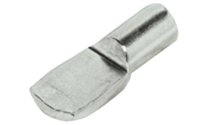 Полицетримач для дерев'яних полиць, у формі лопатки, матеріал: сталь, покритий латунню, для вставляння у отвір діаметром 5 мм, максимальне навантаження 80 кг.