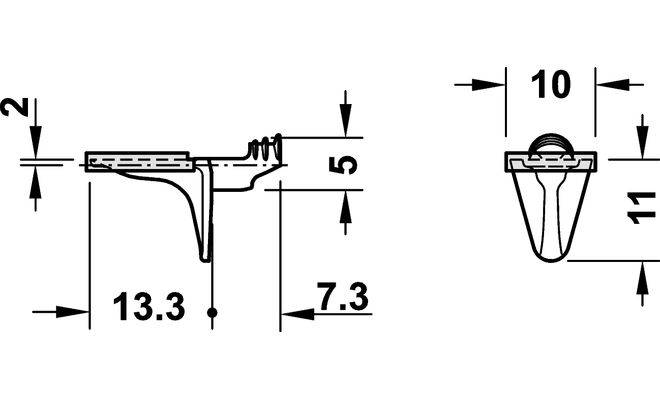 Технічні характеристики Полицетримач нікельований цамак для скляних полиць d5 мм (упаковка 500 шт) 28224733