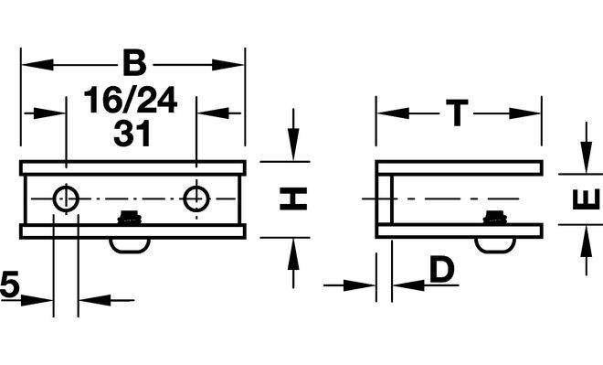 Дизайн-затискний полицетримач для дерева і скла, матеріал: цинкове лиття, хромований, полірований, розмір: 40 x30 x14,5 мм, для полиць товщиною 6-8 мм, для вкручування в отвір діаметром 3.5 мм.