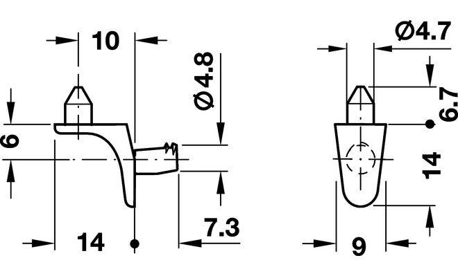 Технічні характеристики Полицетримач з 2 клиновими носиками з вставним шипом (упаковка 100 шт) 28224726