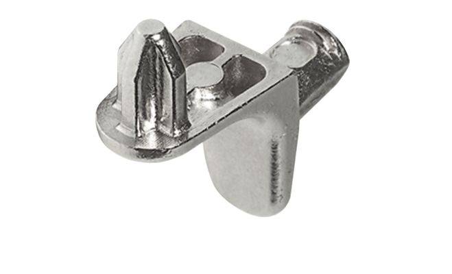 Полицетримач з 2 клиновими носиками, з вставним шипом, матеріал: цинкове лиття, нікельований, для дерев'яних полиць, максимальне навантаження 125 кг.